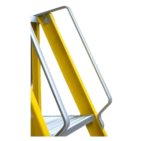 La Escalera de Tijera 5 Peldaños Fibra de Vidrio y Pasamanos de Aluminio, está fabricada con Pilares de Fibra de Vidrio y Peldaños de Aluminio. Dispone de 5 Peldaños, Plataforma de Trabajo y Pasamanos de Aluminio. Esta Plataforma en la Sección Superior, permite trabajos prolongados, con una Superficie muy Segura. También se puede utilizar para dejar herramientas, o cualquier elemento, mientras el usuario desarrolla su actividad. Adicionalmente, se dispone de dos pasamanos en la parte superior para una escalada y descenso fácil y seguro. Su diseño liviano y resistente la hace fácil de transportar y manipular, mientras que los sistemas de bloqueo garantizan su estabilidad. Se destaca principalmente por su simpleza en el formato “de Tijera” ya que no requiere apoyarse en ninguna pared, lo que la hace conveniente para una variedad de trabajos, tanto en interior, como al aire libre.