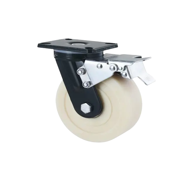 RUEDA CARGA PESADA MONOBLOQUE NYLON MC PLACA GIRATORIA CON FRENO