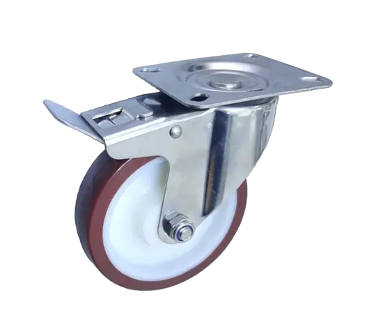 Rueda Banda PU Núcleo Poliamida Placa Giratoria Inox Con Freno
